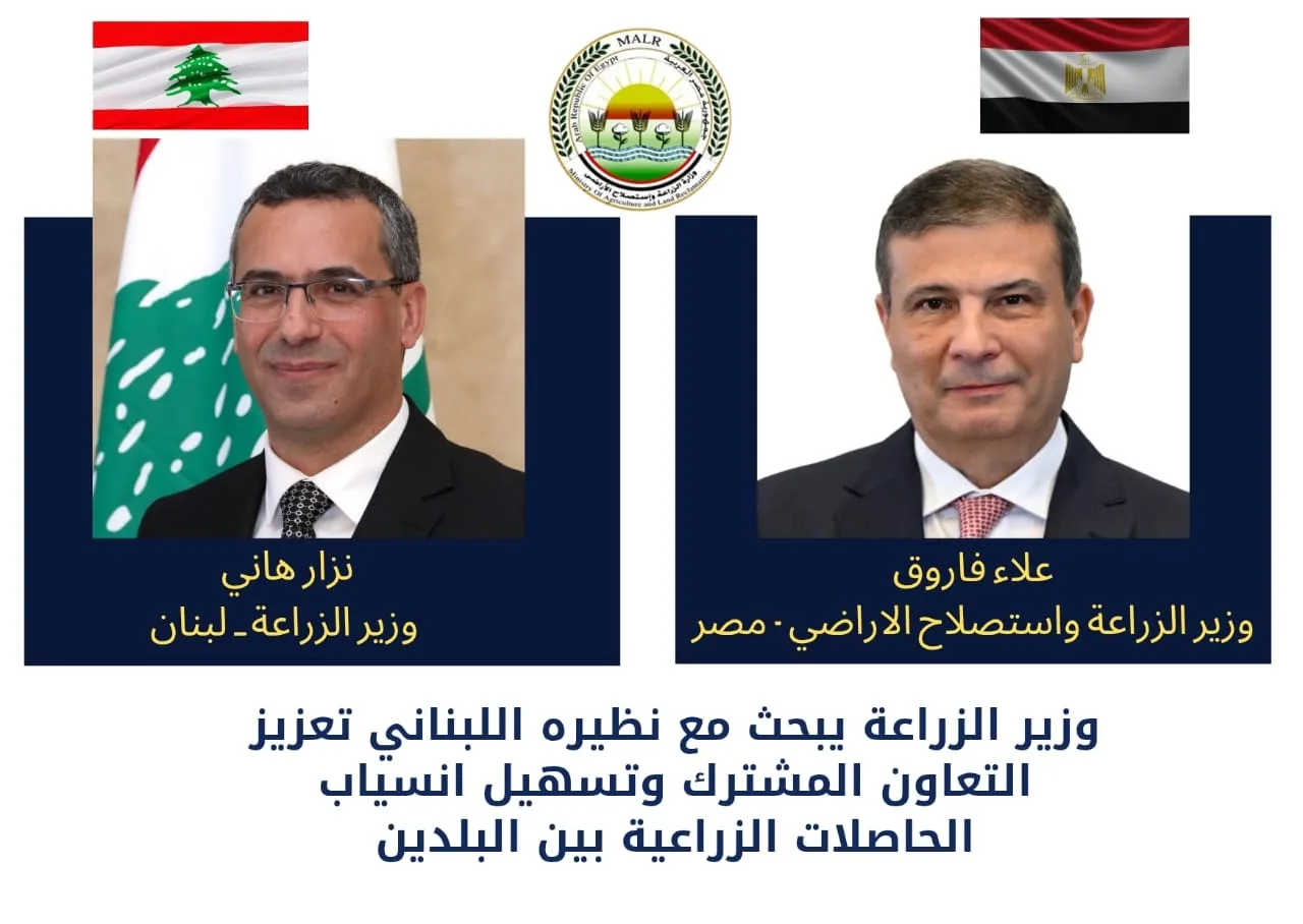 وأكد “فاروق” على توجيهات القيادة السياسيةـ بتقديم كافة سبل الدعم للدول العربية الشقيقة، لافتا الى استعداد وزارة الزراعة بكافة اجهزتها لتقديم الدعم الفني اللازم للقطاع الزراعي في لبنان، حيث أكد أهمية التكامل بين البلدين الشقيقين من خلال متابعة تطورات اوضاع السوق المحلي واحتياجاته في ظل الظروف الاقليمية الراهنة.